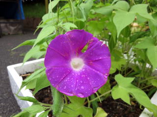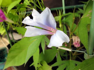 | つる出る前に変化朝顔咲く | 花の縁が白い変化朝顔咲いた | |||||||||||