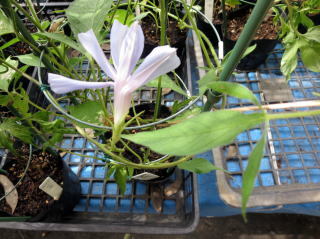 | ライトブルーの極細花びらの変化朝顔 | ピンクに白縞模様と葉の少々カールの変化朝顔 | |||||||||||