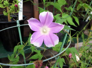 | 薄紫のラッパ型で芯に小さな髭の出た変化朝顔 |