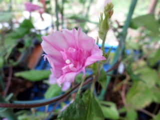 | つぼみも出てきた変化朝顔 |