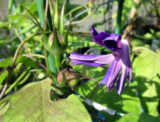 花も咲き種も出来てきた変化朝顔 |