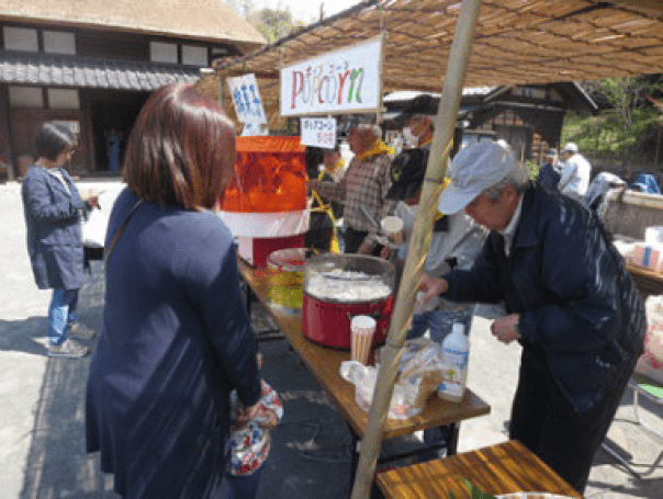 今年は、チップ化した間伐竹材で整備された散策路のオオシマザクラ、ヤマザクラの下をのんびりと歩く早朝の観桜ウオーキングや、ボランティアによるジャガバター、フランクフルト、甘酒、綿菓子、ポップコーンなど、たくさんの模擬店もあります。また、枝垂れ桜の下で紙芝居、昔ばなしの後、最後は参加者全員によるビンゴゲームと盛りだくさんです。