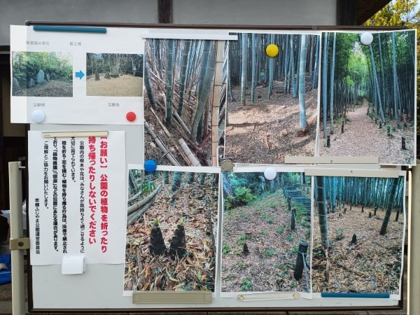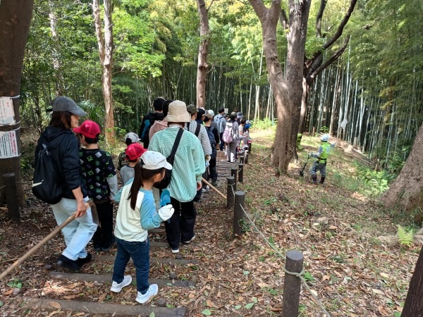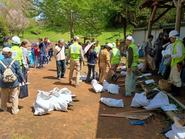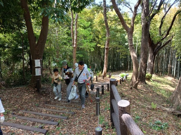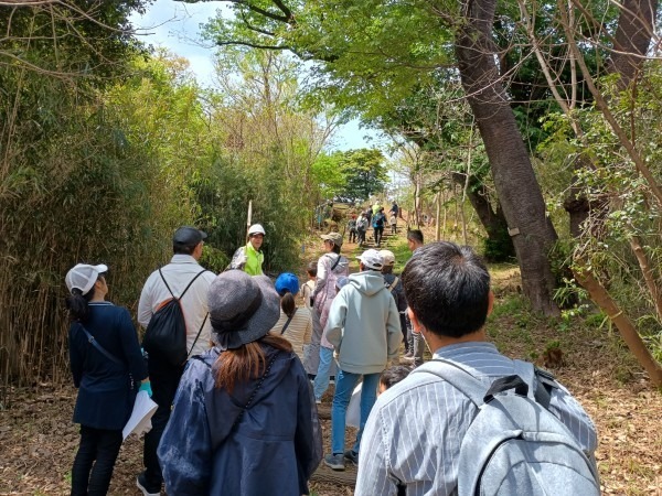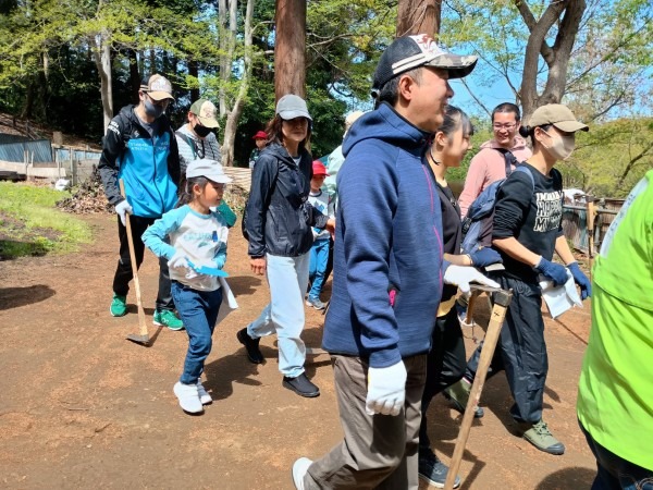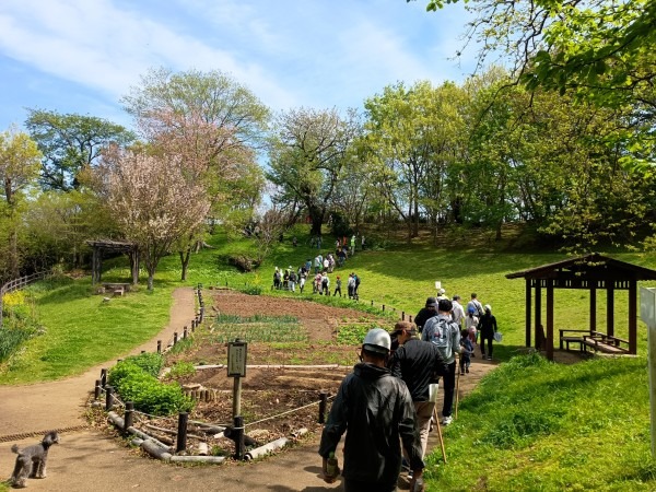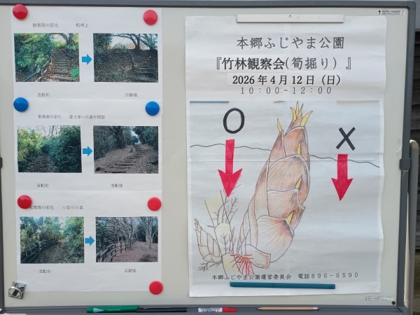 2026年4月12日、春らしい澄んだ青空が広がる中、本郷ふじやま公園里山部会と公園愛護会の共催による「竹林観察会兼タケノコ掘りイベント」を開催しました。一般公募で集まった参加者の皆さんとともに、竹林の生態を学びながらタケノコ掘りを体験する、毎年人気の企画です。