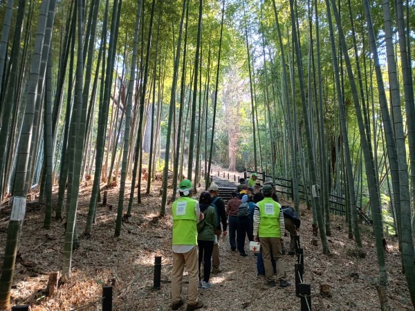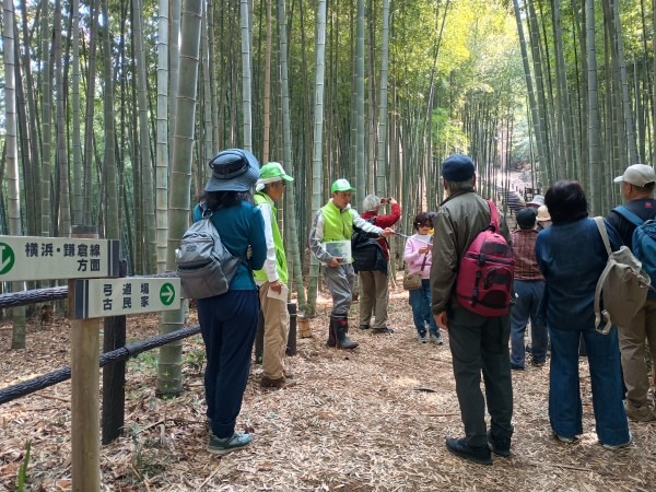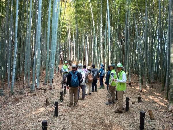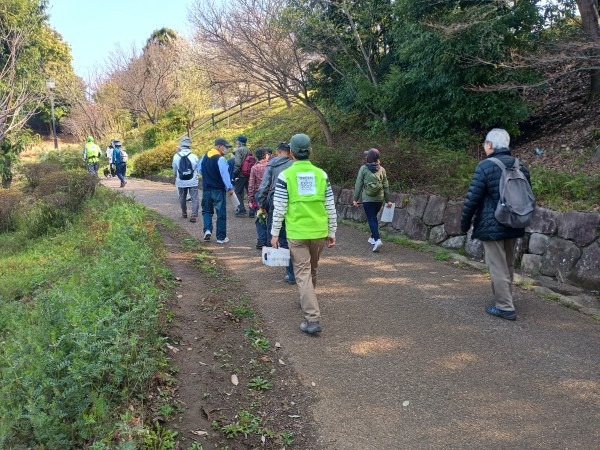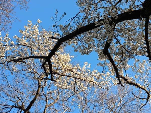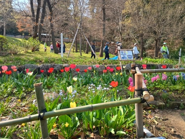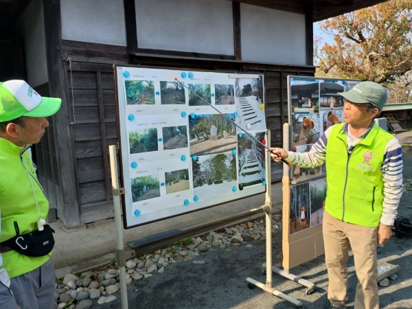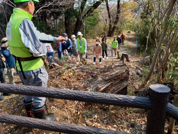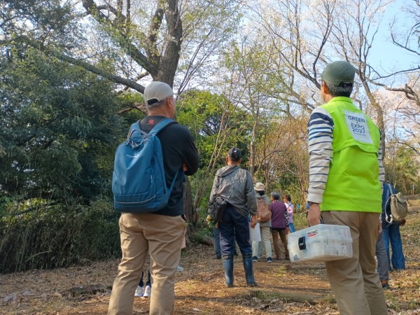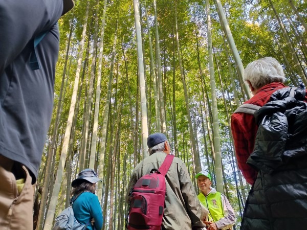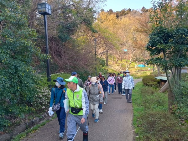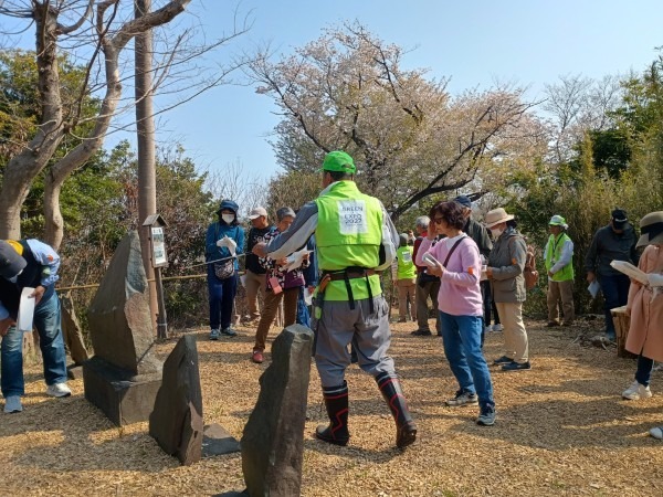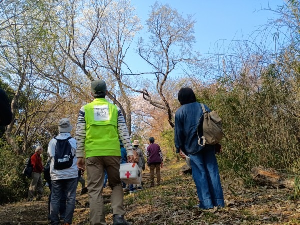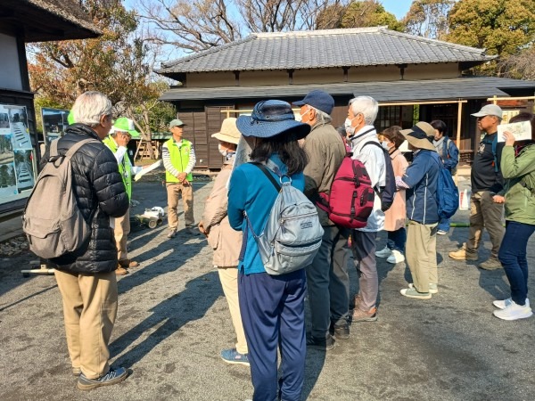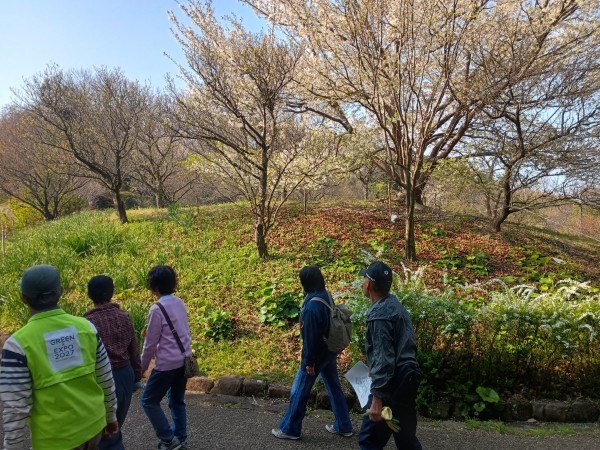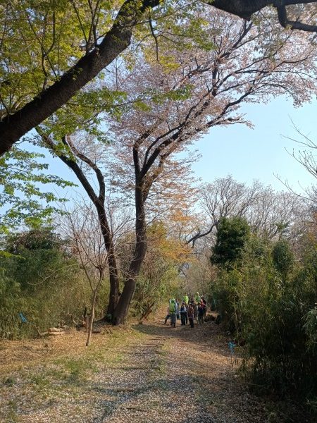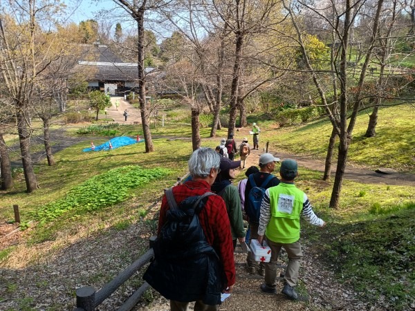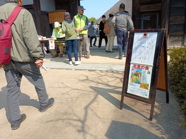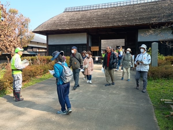 3月29日(日)の花見の会の当日、関連イベントの観桜ウォーキングが予定通り開催されました。朝8時半に集合し、花見の会が始まる10時の30分くらい前までには古民家ゾーンに戻ってくる予定でしたが、途中途中でのガイドさんのお話に夢中になっていたら、いつの間にか開演10分前になってしまいました。