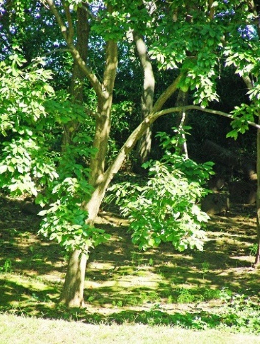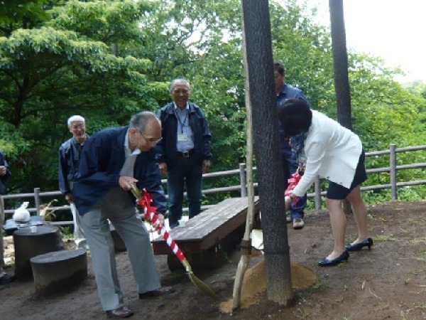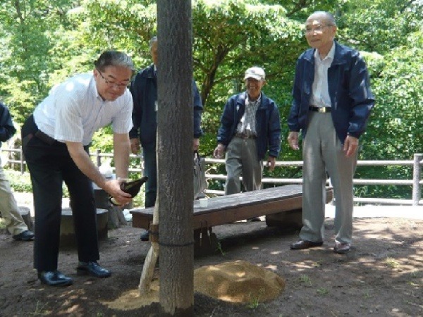 開園時の欅は若木に代りました。古い欅の切株も残っています。