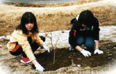 クヌギの植樹(平成15年2月)地域の小学生による。