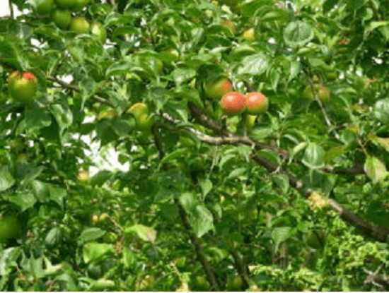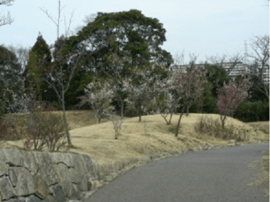 正面入口(中野町側入口)から古民家へ向う主園路の左側に小規模ながら梅林があります。