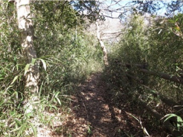 竹林の広さは中野竹林と合わせて約2.5㌶です。公園の南西に位置し、炭焼き広場から頂上に向かい三叉路の右側が鍛冶ヶ谷竹林です。園路を下ると鍛冶ヶ谷歩道橋に出ます。