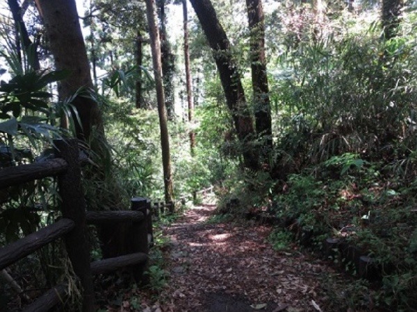 炭焼き広場から頂上へ通じる園路わきの杉。