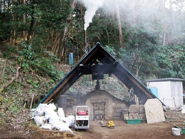 炭焼き窯は耐火煉瓦や荒木田土を積み上げて造った本窯です。シーズンには公募で炭焼き体験教室も行っています。