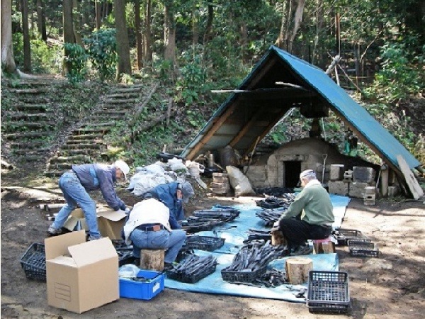 出来上がった竹炭は消臭材として利用できます。販売していますので管理事務所にお問合せください。