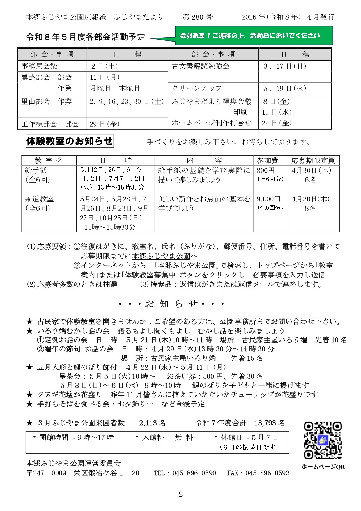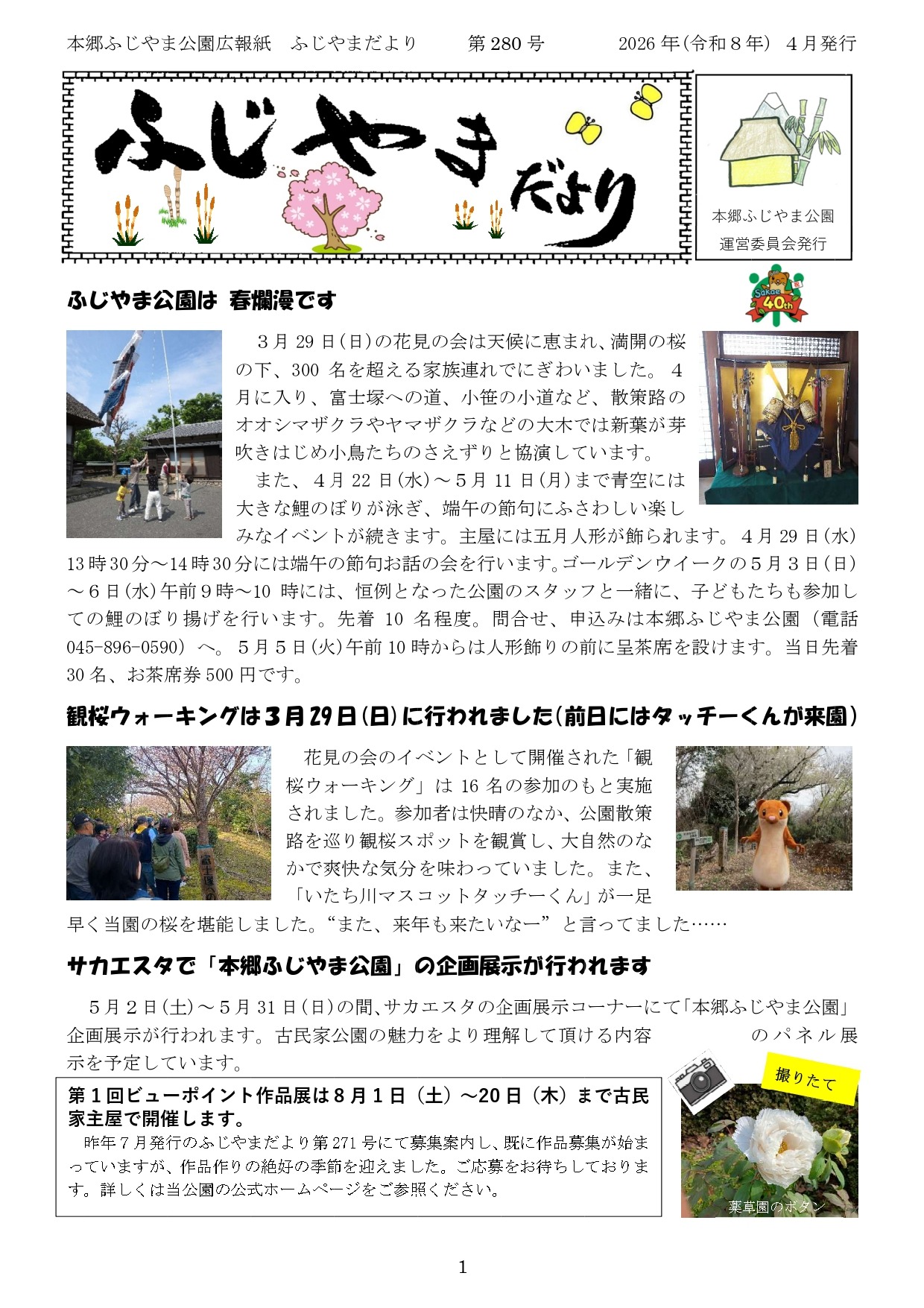 ふじやまだよりの最新版 第280号(令和8年4月発行)はこちらです。