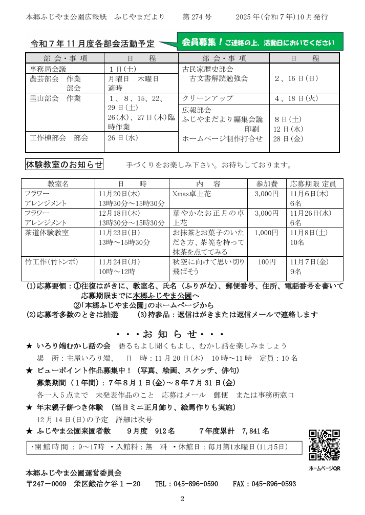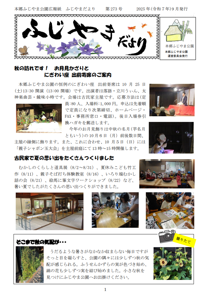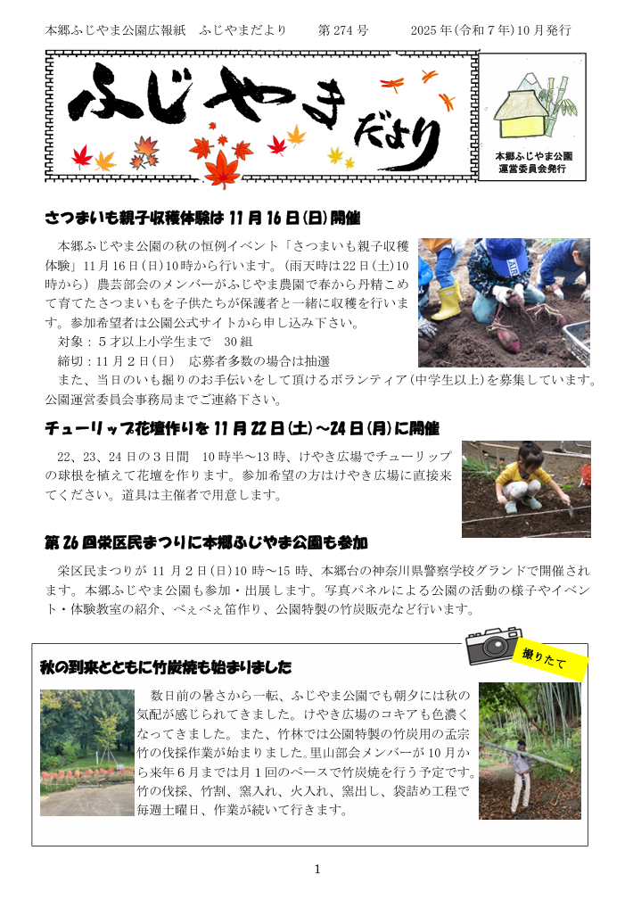 ふじやまだよりの最新版 第274号(令和7年10月発行)はこちらです。